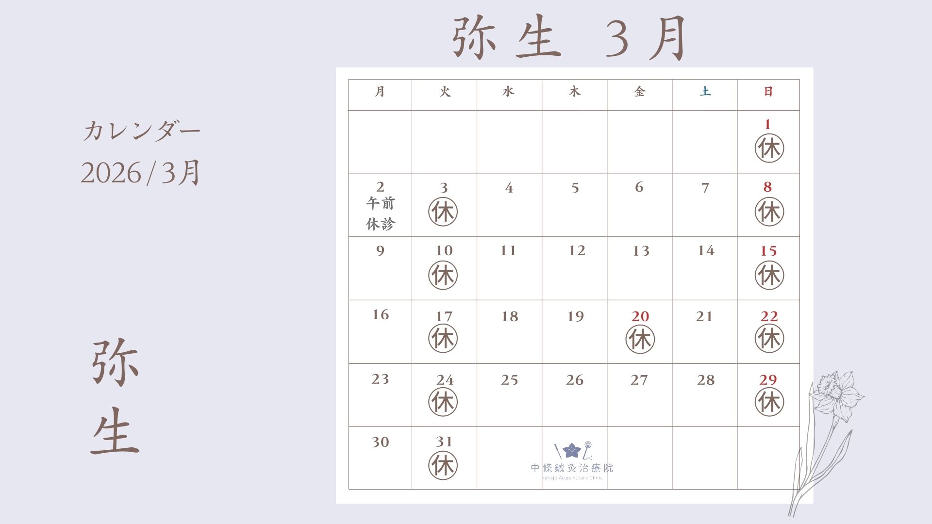 3月2日(月)は、建物の電気工事があるため午前中は休診いたします。
